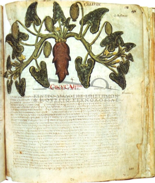 Ομοιοπαθητικά φάρμακα. Θέμα: το καρπούζι, από τον Διοσκουρίδη. Νεάπολη, Εθνική Βιβλιοθήκη.