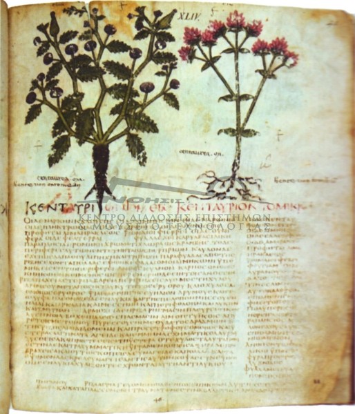 Ομοιοπαθητικά φάρμακα. Κενταύριο φυτό μεγαλύτερο ή μικρότερο, από τον Διοσκουρίδη. Νεάπολη, Εθνική Βιβλιοθήκη.