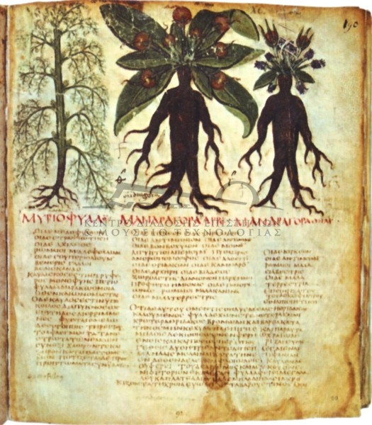 Ομοιοπαθητικά φάρμακα. Ο μανδραγόρας, από τον Διοσκουρίδη. Νεάπολη, Εθνική Βιβλιοθήκη.