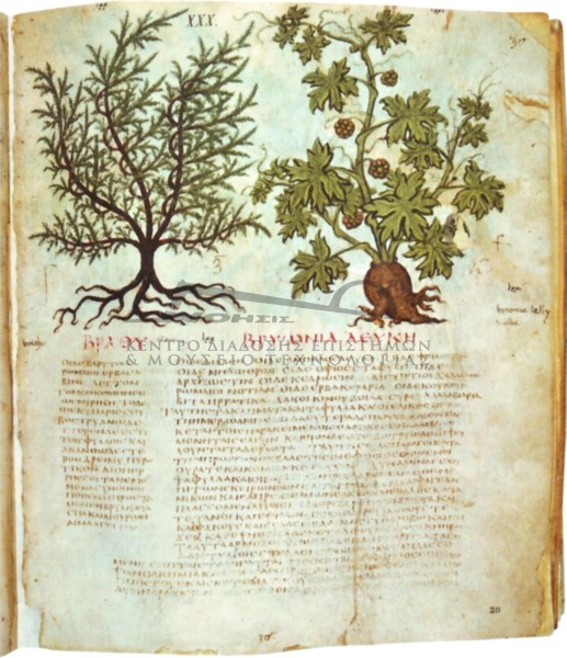 Ομοιοπαθητικά φάρμακα, από τον Διοσκουρίδη. Νεάπολη, Εθνική Βιβλιοθήκη.